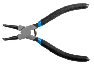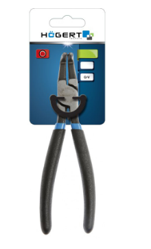 Alicate para montagem e desmontagem de anéis seeger internos. O cabo é revestido em plástico para garantir um manuseamento seguro e confortável.