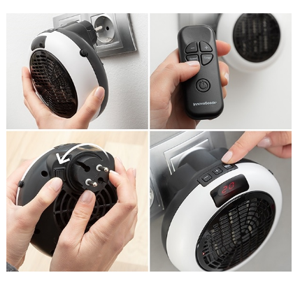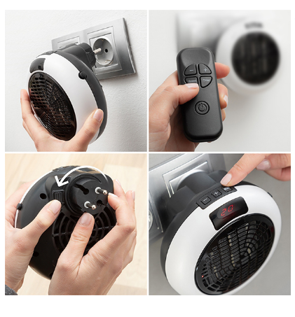 Aquecedor Cerâmico Regulável de Parede c/ Ligação Directa à Tomada + Comando