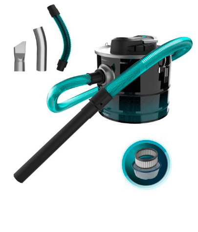 - Aspirador de cinzas com 1000 W de potência para aspirar sem esforço.