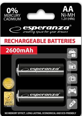 Blister 2 Pilhas Recarregaveis 1,2V 2600mAh Ni-Mh AA (Alta Capacidade) - ESPERANZA