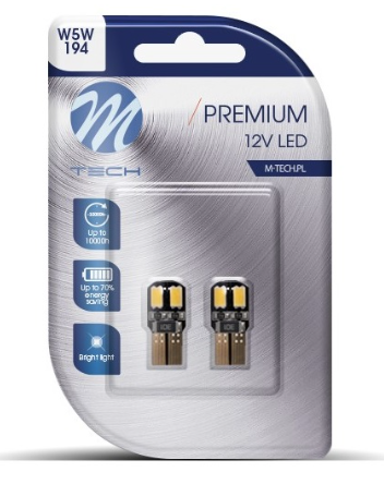Blister 2x Lampadas T10/W5W 4 LEDs SMD5730 12V Branco 6000K CANBUS - M-TECH