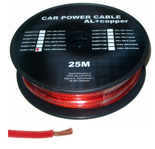 Bobine Cabo Alimentação p/ Amplificadores Auto Vermelho (25 mts)