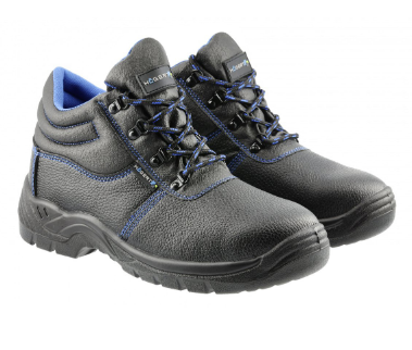 Botas de segurança para proteger os pés de fatores externos. Em conformidade com a classe de segurança S3 de acordo com a ISO 20345:2011. Feito de couro de vaca preto resistente.
