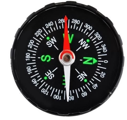 A bússola permitirá que você indique o norte usando o campo magnético. Ao usar a bússola, lembre-se de mantê-la posicionada horizontalmente, você também deve mantê-la longe de dispositivos eletrónicos e peças de metal, é um requisito para que a bússola funcione corretamente. A bússola turística é para todos que desejam ter certeza de sua localização. A bússola de viagem é a ferramenta perfeita para navegação e orientação básica de campo. Todo turista, escuteiro, caçador, viajante e até mesmo catador de cogumelos o achará útil. A bússola de bolso também é ótima para velejar. Todos os que partem para uma viagem ao desconhecido estarão seguros e confortáveis com a ajuda da bússola.