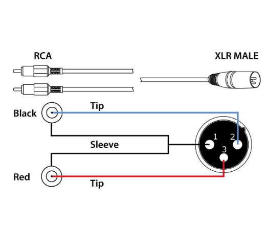 - Ficha A XLR de 3 pinos (M), RCA (M)