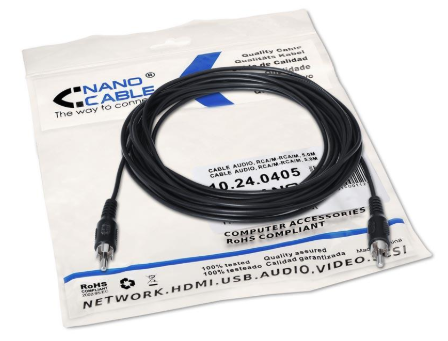 Cabo de Áudio 1 RCA Macho - 1 RCA Macho (5m) Preto - NANOCABLE