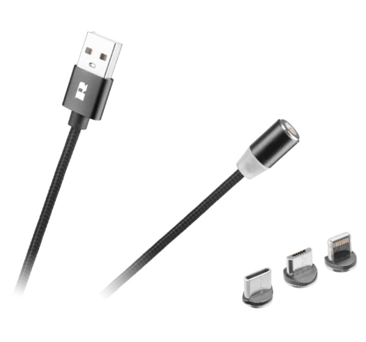 Cabo Magnético USB2.0 A Macho -> "3-EM-1" Lightning Apple, USB-B e USB-C (1 metro) - REBEL
