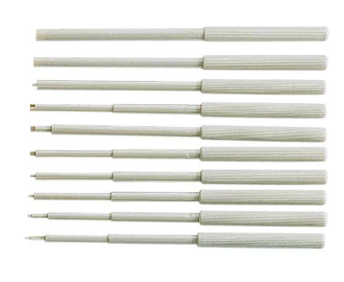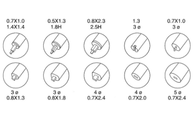 - Pontas: planas (1, 1.5, 2, 4mm), cruz (2.5, 3mm), hex (2, 2.5mm), quadradas (1.5x1.5, 2x2mm).