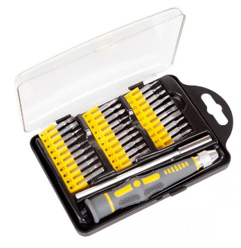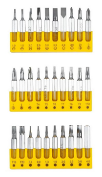 - Na caixa possui 32 pontas de chave de fenda de precisão, uma chave de fenda avançada, aço de alta dureza, possui também um adaptador extensível e flexível, ideal para alcançar parafusos de difícil acesso.