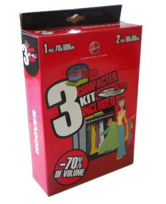 Os sacos compacter são eficientes sacos reutilizáveis, criados para reduzir o volume de armazenamento das roupas em 70%.