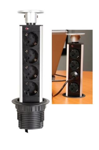Extensão Quadrupla Oculta "POP-UP" p/ Secretárias, Balcões, ... - PEREL