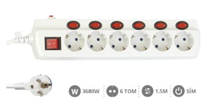 Extensão Sextupla c/ Interruptor p/ Cada Via (1,5 mts) - GSC