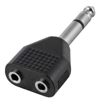 Ficha Adaptadora Jack 6,5mm Macho Mono - 2x Jack 3,5mm Femea Mono