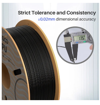 O nosso filamento TPU é fabricado com tolerâncias rigorosas e uma precisão dimensional de ±0.02mm, garantindo que as suas impressões tenham uma precisão e consistência excecionais.