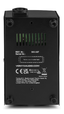 - Ligações: 1 x entrada de PA; 1 x saída subwoofer PA; 1 x saída de PA para altifalantes-satélite