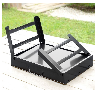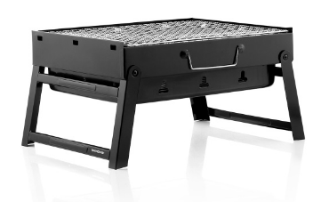 Um grelhador de mesa a carvão muito prático e manobrável para levar de forma prática para qualquer lugar devido ao seu design moderno, dobrável e portátil. Tem orifícios de ventilação e pega de transporte para facilitar o transporte. A grelha para alimentos é amovível e permite acrescentar carvão com facilidade em qualquer momento. Inclui uma rede inferior, de proteção, que se coloca no interior, na base do grelhador para colocar o carvão (1,5 kg no máximo). Este grelhador de ferro é resistente, ocupa pouco espaço e monta-se e desmonta-se com facilidade, bastando esticar os pés e apoiá-los no piso ou na mesa (sobre uma superfície plana, estável e resistente ao calor). Ideal para desfrutar de um refinado grelhado em boa companhia (2 comensais), é muito fácil de utilizar e de limpar. Para atear devem utilizar-se pastilhas, gel ou outras acendalhas adequadas para grelhadores (não incluído), ainda que para melhor conservação do grelhador durante mais tempo seja recomendado acender as brasas utilizando um dispositivo para carvão (não incluído). É importante ter em consideração que este grelhador não está preparado para madeira nem para outros combustíveis. Não inclui carvão.