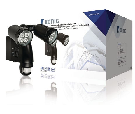 Iluminação Exterior em LED c/ Camara e Sensor Movimento Ocultos - Konig