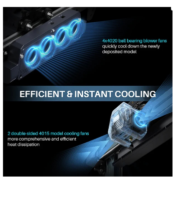 - 4 potentes ventoinhas 4020 dissipam o calor durante a impressão de alta velocidade a uma taxa de rotação máxima de 10 000 rpm;