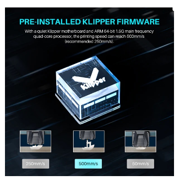 A impressora FDM utiliza um processador de computação de alto desempenho que permite atingir uma velocidade máxima de incríveis 500 mm/s! A Elegoo recomenda uma velocidade de impressão padrão de 250 mm/s para obter melhores resultados de impressão.