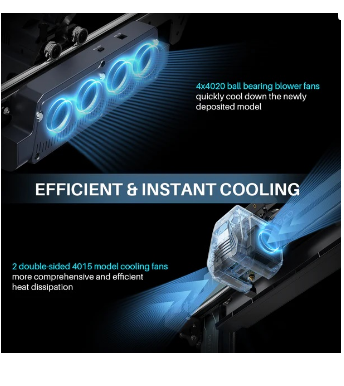 4 potentes ventoinhas 4020 dissipam o calor durante a impressão de alta velocidade a uma taxa de rotação máxima de 10 000 rpm;