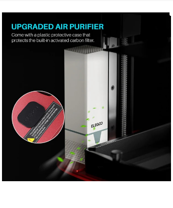 O Plug-in-Air Purifier foi especificamente concebido para impressoras 3D para absorver eficazmente os odores da resina. O purificador de ar tem um filtro de carvão activado com tampa.