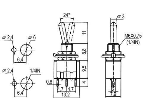 - Capacidade de carga de contato: 3A 250V/6A 125V