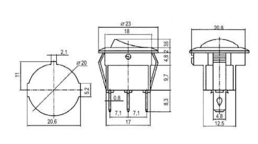 Interruptor Redondo Luminoso ON-OFF 250V/6A - Azul