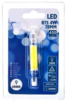 Lampada LED R7S 78mm 4,5W Branco Frio 6000K 450Lm - Vidro