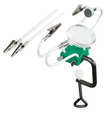 - Composto por 2 Braços articulados c/ Pinças Crocodilo, 1 Braço articulado c/ Lupa e 1 Braço articulado c/ ponta magnética
