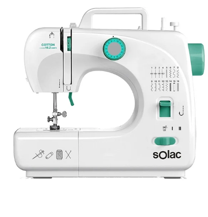 Accessórios: Calcador para botões, agulha sobressalente, 2 bobinas de metal, 2 linhas e enfiador de agulhas