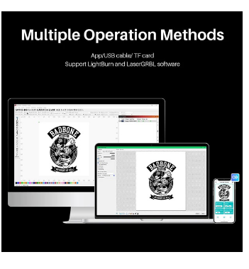 O gravador a laser ELEGOO Phecda oferece vários métodos de operação para sua conveniência. Pode controlar a máquina por meio de um aplicativo móvel para operação remota WIFI e gravação personalizada (o seu telefone deve estar conectado ao wifi da máquina), transferir dados usando um cabo USB ou cartão TF e suporta software LightBurn e LaserGRBL para maior flexibilidade.