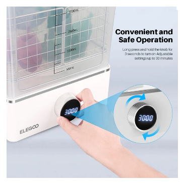 Ambos os dispositivos são operados por um único botão giratório, que também serve como display. Lavar e curar nunca foi tão fácil.