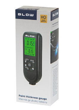 O medidor de espessura de tinta BLOW é um dispositivo pequeno e útil que lhe permite verificar a espessura da tinta do carro que está a ver ou a comprar. Graças ao nosso dispositivo, pode verificar facilmente se o vendedor forneceu dados fiáveis sobre a pintura. O dispositivo é alimentado por pilhas AAA, o que o torna ideal para tarefas de campo. O medidor é fácil de utilizar.