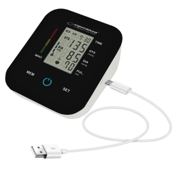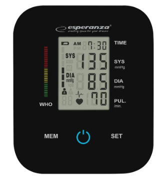 O monitor de pressão arterial Esperanza LA LENA é um dispositivo médico de última geração concebido para medições de pressão arterial rápidas, precisas e confortáveis. Com o seu método de medição oscilométrica e sensor de pressão avançado, fornece resultados precisos, sendo ideal para a monitorização diária da saúde. Fácil de utilizar e equipado com memória para dois utilizadores, é a solução perfeita para indivíduos que priorizam a sua saúde, bem como para toda a família.