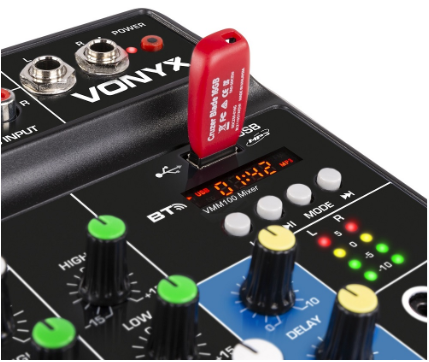 O VMM100 pode ser pequeno, mas com 3 canais de entrada, saídas principais, saída de fone de ouvido e um MP3 player USB, este mixer tem tudo o que você precisa para começar a mixar e gravar. A alimentação fantasma de +48V é selecionável para as entradas XLR para microfones condensadores. Ideal para DJs, músicos, podcasters, compositores e todos os outros aplicativos de palco ao vivo. Ligue usando o adaptador de energia fornecido ou a partir da porta USB de um computador.