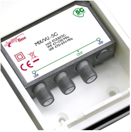 Misturador Antena 1 Entrada VHF / 1 Entrada UHF c/ Filtro 5G - JollyLine