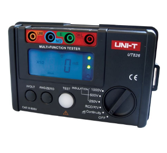 - Corrente de teste: 100V (R=100kOhm); 1mA / 250V (R=250kOhm); 1mA / 500V (R=500kOhm); 1mA / 1000V (R=1MOhm); 1mA