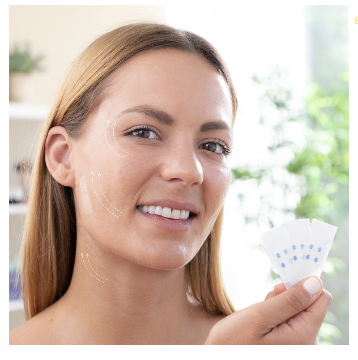 Estas tiras de lifting facial são colocadas principalmente na zona do pescoço, queixo, contorno dos olhos e mandíbula para lhe conferir uma aparência mais estilizada e jovem. Podem ser utilizados em qualquer momento, especialmente em festas e eventos, reuniões ou ocasiões especiais, etc. Após a utilização devem ser eliminados e não devem utilizar-se novamente.