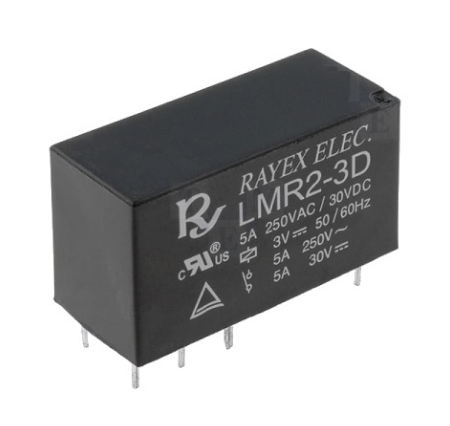 Relé DC3V 176.5mA, DPDT 5A, PCB - Rayex