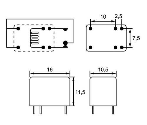 Relé Mini 9V CC 1 Contacto 2A (16x11,5x10,5mm)