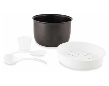 Inclui: livro de receitas, cesto de cozedura a vapor, espátula, copo medidor e colher