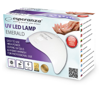 Permite torná-lo mais rápido, mais barato e exatamente como você deseja que seja. A lâmpada cura uniformemente todos os materiais híbridos, acrílicos, vernizes em gel e outros produtos para unhas que precisam ser curados com luz UV. A lâmpada é perfeita para manicure e pedicure em casa e para salões de beleza profissionais. É equipado com 12 LEDs eficientes com uma saída total de 40 W, fornecendo luz branca e comprimento de onda duplo de 365 nm e 405 nm. Possui sensor de movimento e visor de tempo de cura que facilitam a operação.