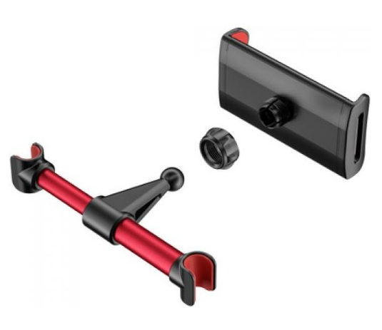 Suporte de carro ajustável com apoio de cabeça para telemóvel ou tablet.
