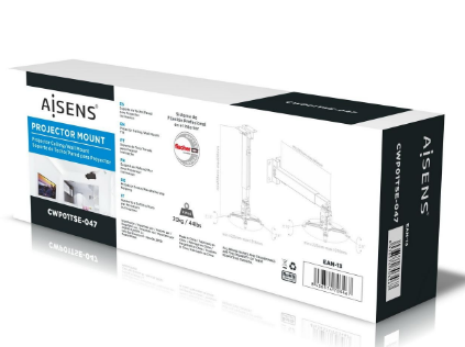 Suporte de Tecto p/ Projetores (Preto) - AISENS