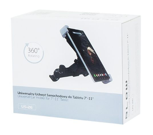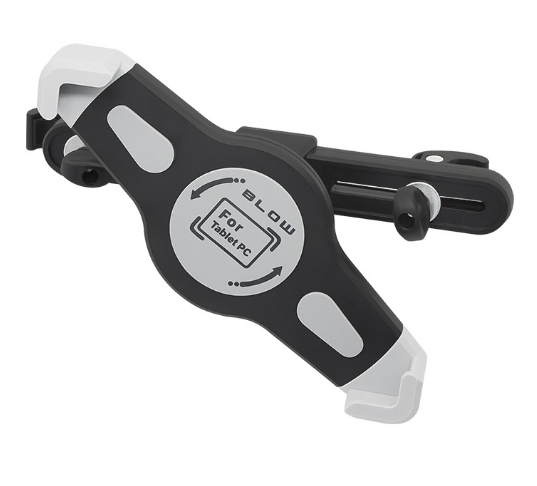 O suporte universal para tablet BLOW no encosto de cabeça permite que você use dispositivos portáteis enquanto conduz. O produto tem um design atraente e permite que você ajuste o dispositivo em um ângulo conveniente.