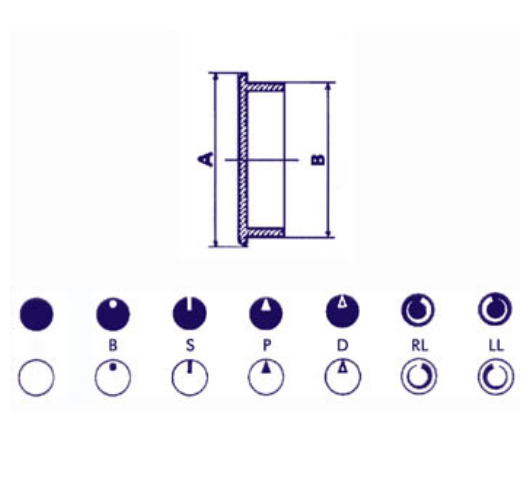 Dimensões: para botão Ø = 21mm