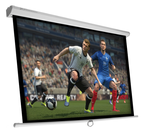 Material do Ecrã: Tecido branco mate, Lavável, Costas em tecido preto para evitar reflexos