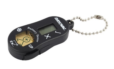 O testador eletrónico Rayovac permite que você verifique o nível da bateria com precisão. Usar o testador é muito fácil - basta conectar a bateria à parte de metal do testador, e o visor LCD mostrará um gráfico mostrando o nível da bateria.