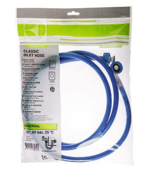 A mangueira de entrada clássica universal é muito fácil de instalar graças ao seu conector direito para gancho. Conta com um design que se ajusta a qualquer uma das nossas máquinas de lavar loiça ou máquinas de lavar roupa.