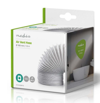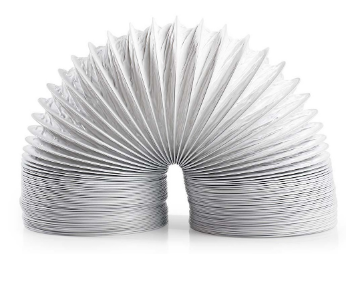 Mangueira de PVC para máquinas de secar e sistemas de ventilação para drenar vapor em duches, casas de banho, salas de estar, etc. A mangueira flexível tem um diâmetro de 100mm e pode ser estendida até um comprimento máximo de 1,50 mts.